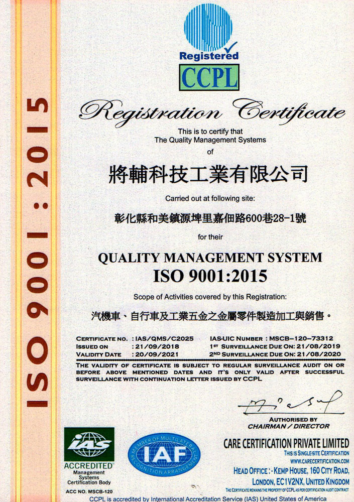 將輔一直在創造與客戶之間「雙贏」的價值,也相信唯有對客戶的「品質」,這條道路才能更長與寬闊,這是我們對客戶的承諾,也是將輔科技工業有限公司核心。